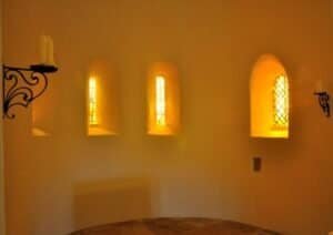 In de toren staat een molen om het meel voor de monniken te malen. De molen moest binnen de muren staan, zodat er bij een aanval van buitenaf, geen hongersnood binnen de muren ontstaat.