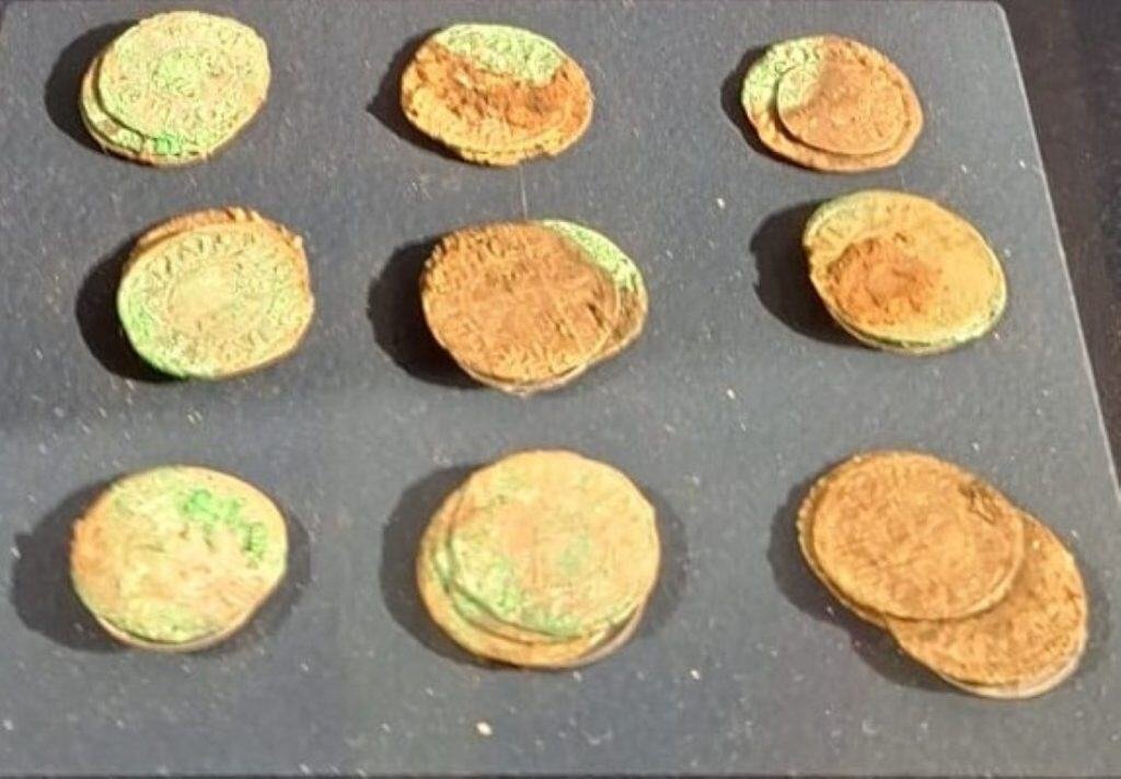 21 gouden dinars, geslagen tussen 1121 en 1131 in Andalusië en Marokko onder de Almoravidische heerser Ali Ben Youssef – tot dan toe waren er in Frankrijk slechts tien gevonden;